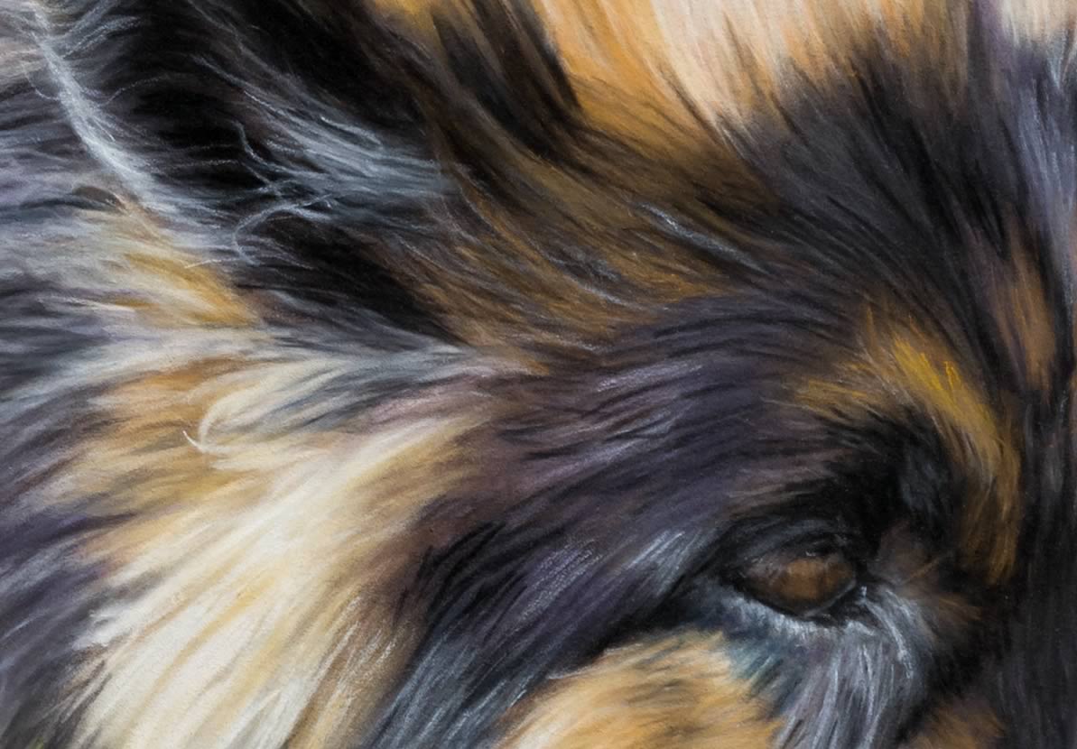 The German Shepherd (Blue) and ducks were composited together making sure the shadows fall in the same direction.