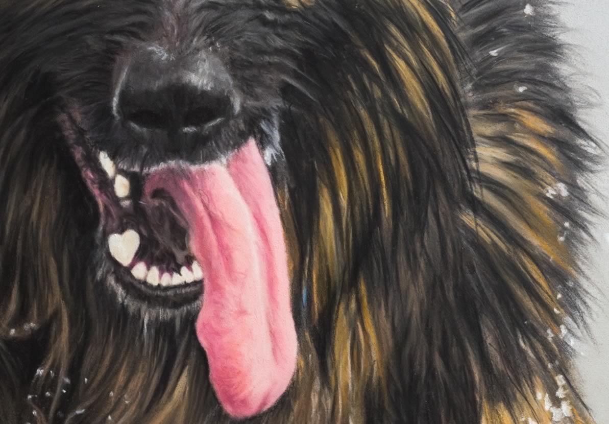 The challenges with this piece was recreating the wet fur and the splashing of the wave in the water. The other painting of Blue can be seen Here.