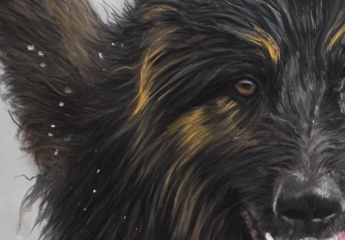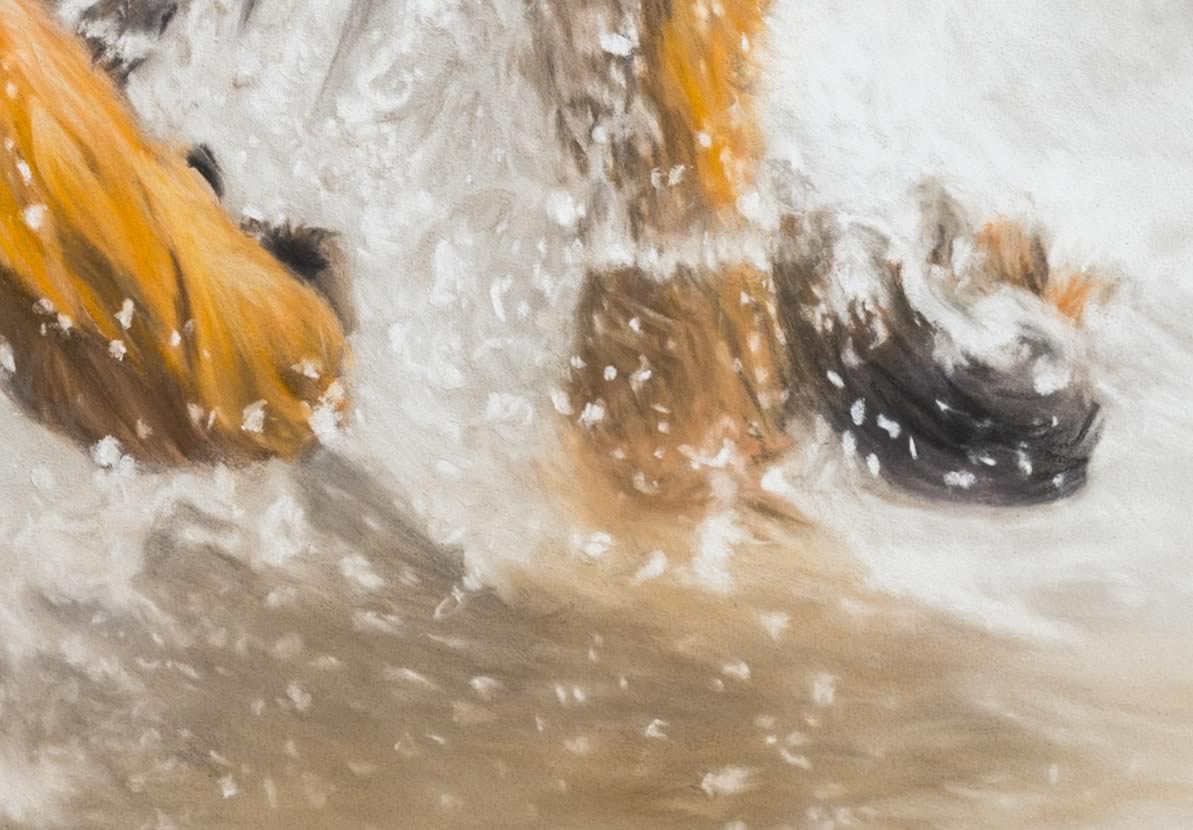 The challenges with this piece was recreating the wet fur and the splashing of the wave in the water. The other painting of Blue can be seen Here.